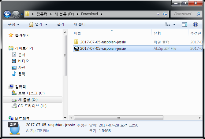 다운로드 받은 이미지 파일을 압축 해제합니다.