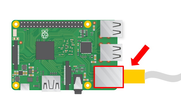 라즈베리 파이에는 USB 포트 옆에 이더넷 포트가 있습니다. 근처에 라우터, AP, 스위치가 있다면 이더넷 케이블을 연결하여 네트워크에 접속할 수 있습니다. 이더넷 케이블 한 쪽을 라즈베리 파이에, 다른 한쪽을 AP에 연결하면 라즈베리 파이가 네트워크에 연결됩니다.