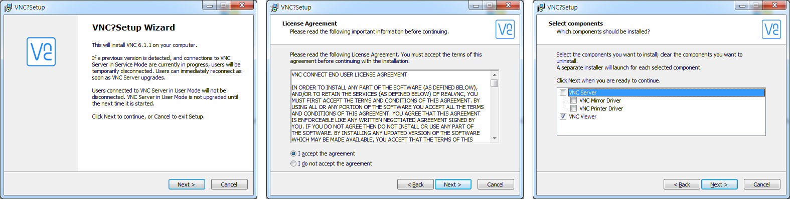 여러분PC에서는 VNC 서버가 필요없기 때문에, 서버가 아닌 VNC 뷰어를 선택하고 설치를 완료합니다.