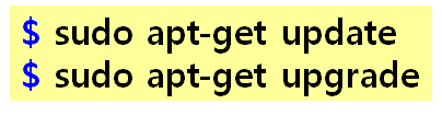 라즈비안이 정상적으로 부팅되었다면 시스템의 언어가 영어로 설정되어 있을 것 입니다. 이것을 한글로 바꾸기 위해서는 몇 가지 작업이 필요합니다. 라즈비안에 명령어을 입력하기 위해서는 창 모양의 리눅스 터미널인 LXTerminal 프로그램을 시작해야 합니다. 우선 보드가 인터넷에 연결되어 있어야 합니다. 업데이트와 업그레이드 명령어를 입력해서 최신 패키지를 다운로드 합니다.