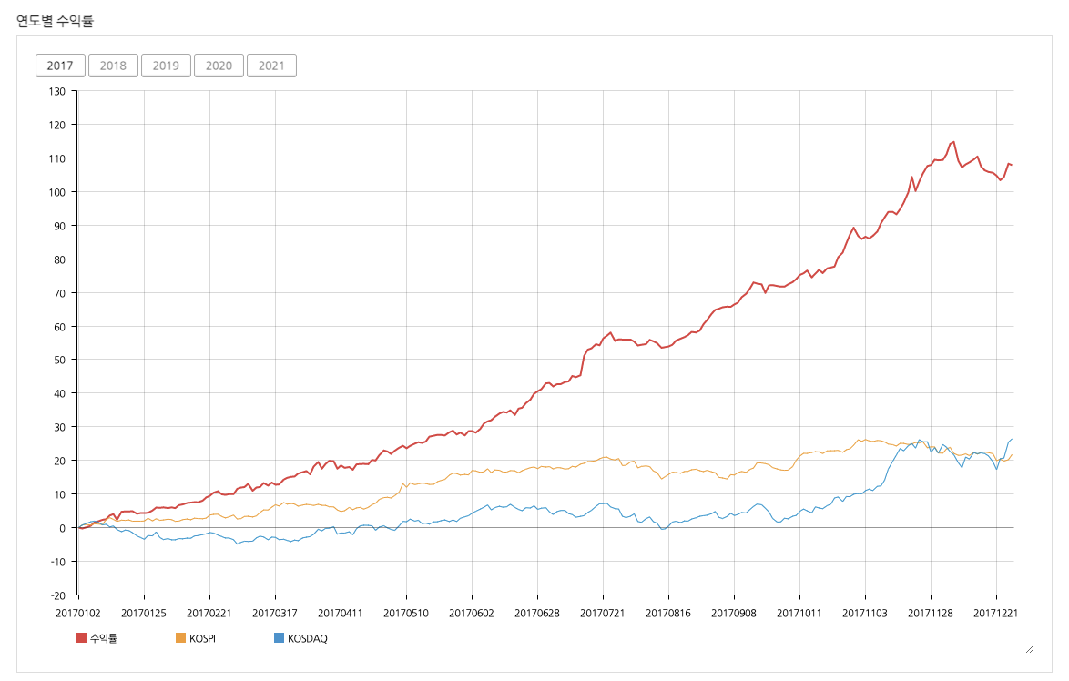 2017년에는 110%정도에 가까운 수익률을 기록했습니다.