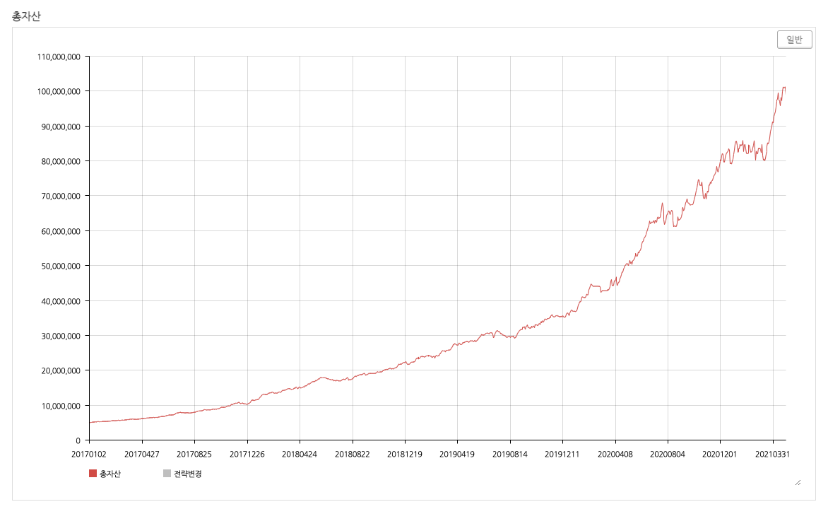 단순 투자원금 500만원이 1억가까이 불어나는 전략이네요~