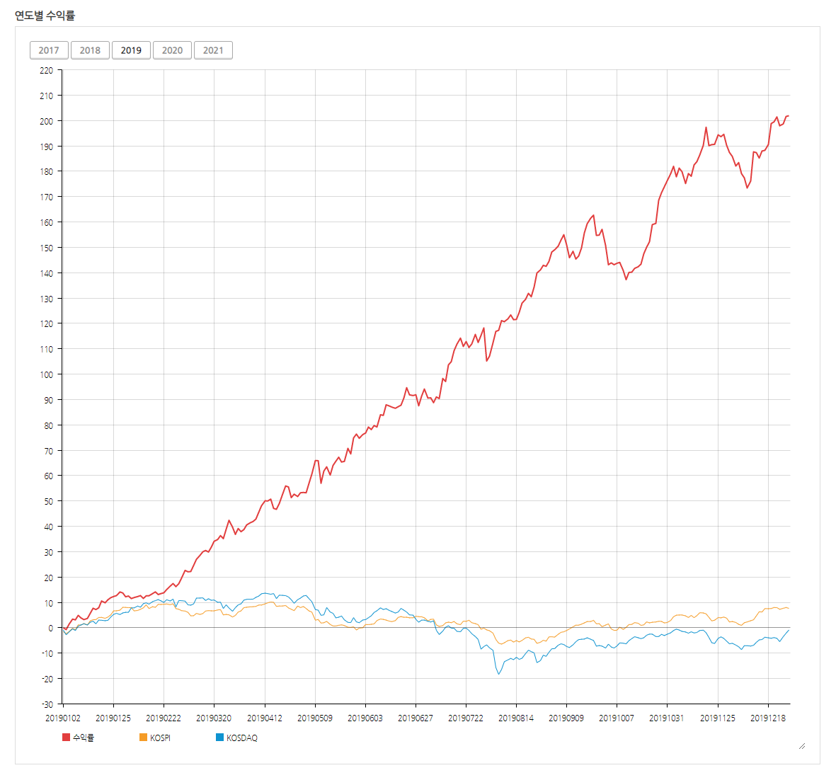 2019년에는 약 200% 수익률을 기록했습니다.