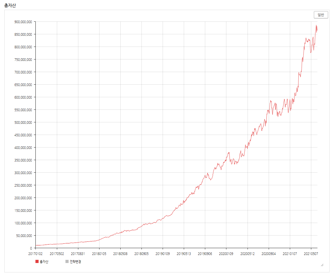단순 원금 1000만원을 투자했을 시 현재 8억 7천만원까지 불어나는 멋진 전략입니다!