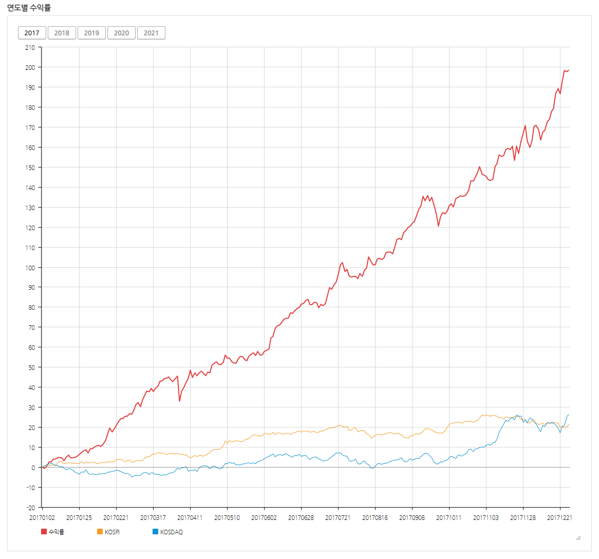2017년에는 약 200%의 수익률을 기록했습니다.