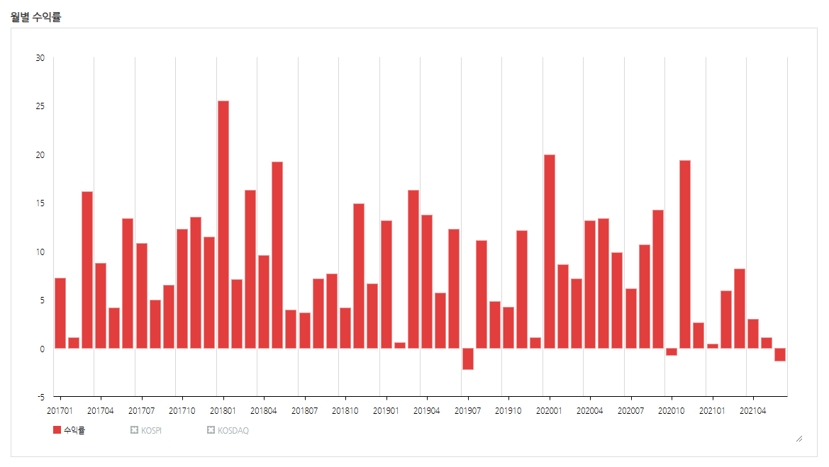 4년 6개월간 마이너스를 기록한 달은 3개월 뿐이네요.
