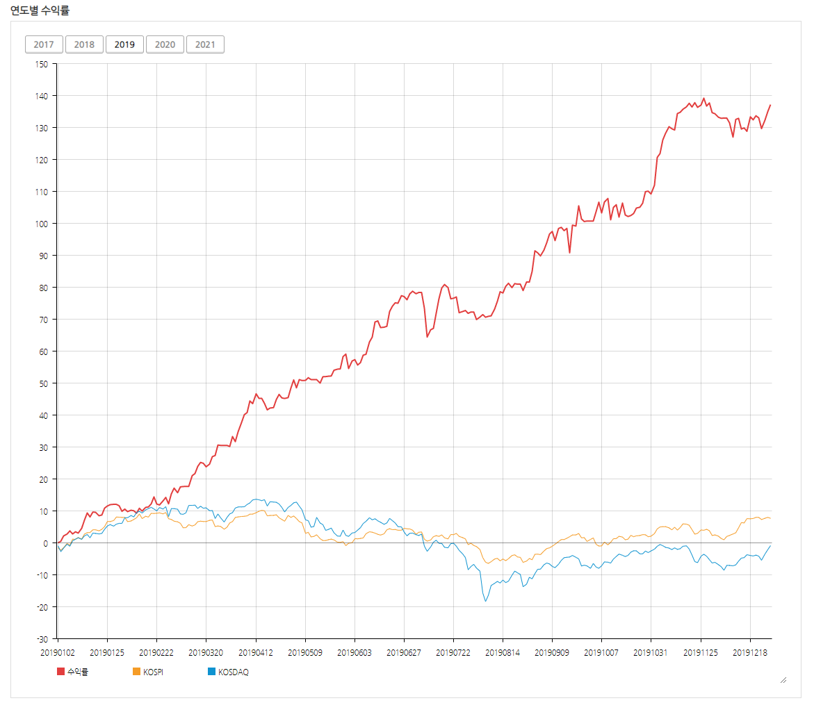 2019년에는 약 140%정도의 수익률을 보여주었습니다.