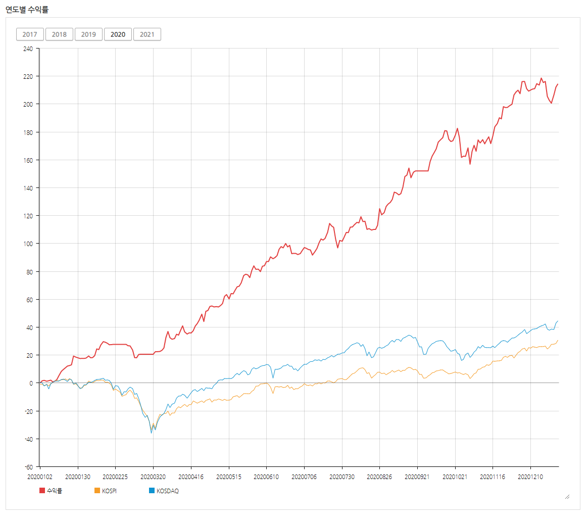 코로나 시대에 이 전략은 약 220% 정도의 수익률을 보여주었습니다.