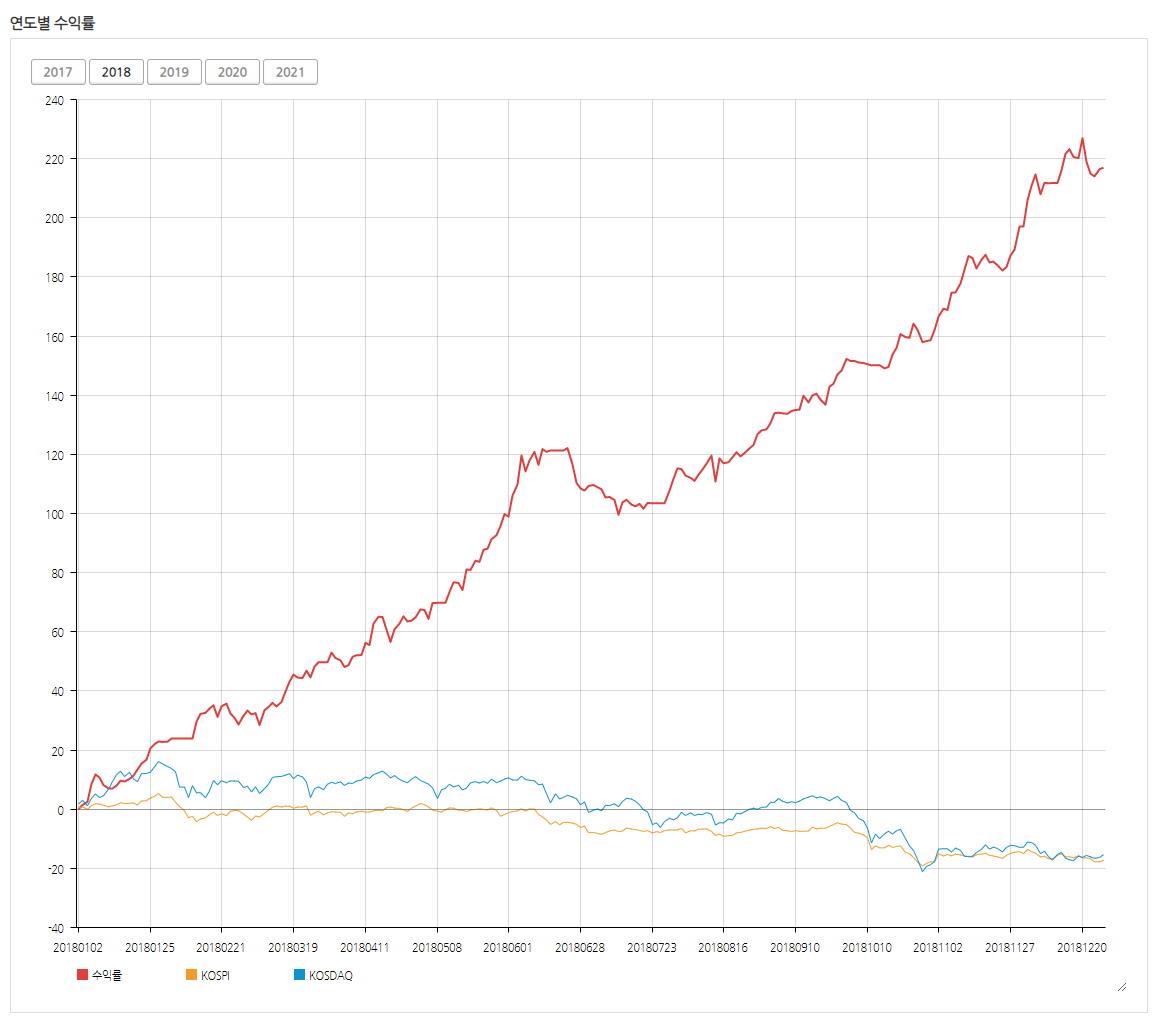2018년에는 약 217% 정도의 수익률을 보여줍니다...! 200이 넘는군요....ㄷㄷ