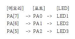 PA가 사용하는 모든 메모리를 0으로 초기화한 꼴...LED가 사용하는 PA[7:5] 비트만 사용해야 한다. 다른 비트를 함께 수정하면 다른 장치들이 오작동하게 된다.